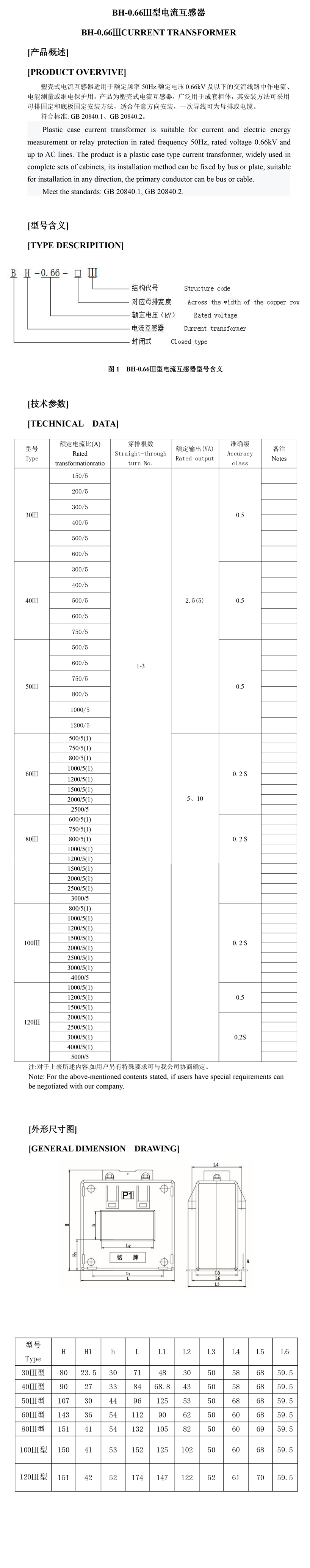 BH-0.66Ⅲ型電流互感器